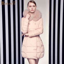 朗曼笛新款粉色大狐狸毛领羽绒服女中长款加厚 修身冬装品牌外套