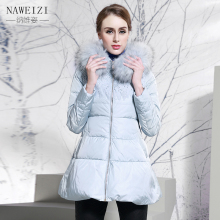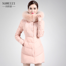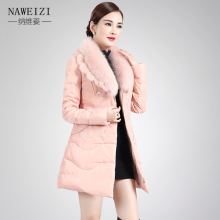 纳维姿2016新款高端奢华狐狸大毛领羽绒服女中长款女修身冬装外套
