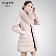 纳维姿冬装新款狐狸毛领奢华羽绒服女中长款成熟羽绒衣外套女士