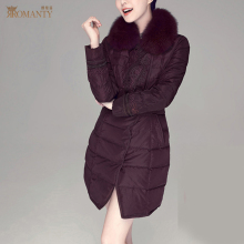朗曼笛新款狐狸毛领中年女士羽绒服女中长款民族风羽绒衣外套大码