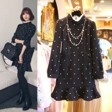 4733米兰多格2015春装新款韩版圆点气质高领毛织荷叶边毛呢连衣裙