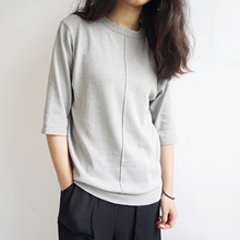 邱太。OL气质显盛!显瘦中袖宽松休闲文艺套头纯色小圆领针织衫女