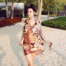 劲朵波西米亚雪纺衫V领宽松防晒沙滩罩衫比基尼泳衣防晒外套