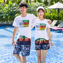 劲朵海边度假沙滩情侣装夏装印花字母T恤短袖速干嬉水短裤