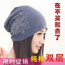 春秋包头帽女夏头巾纯棉月子帽套头水钻帽子女时尚休闲帽孕妇帽潮