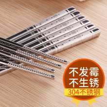 实融 日式304不锈钢筷子家用合金铁方形防滑韩国餐具套装10双加长