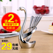 实融 不锈钢水果叉 韩国时尚创意水果签肉叉子 天鹅座餐具套装