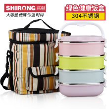 实融 彩色大容量304不锈钢保温饭盒3层学生便当盒保温桶密封防溢