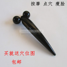 纯黑水牛角按摩车 滚轮按摩点穴棒 牛角尖拨筋棒 脸部按摩器瘦脸