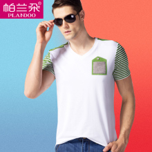 帕兰朵短袖t恤 夏男韩版男士半袖V领棉短t恤纯色打底衫汗衫背心
