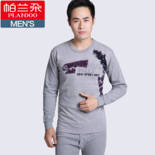 帕兰朵男士保暖内衣圆领外穿加绒加厚款青年打底冬季棉毛衫套装