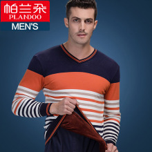 帕兰朵加绒加厚棉质舒绒条纹柔软羊绒3层贴片男士保暖内衣男套装