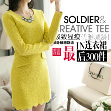 2017春装新款小香风韩版呢料气质长袖修身连衣裙短裙女