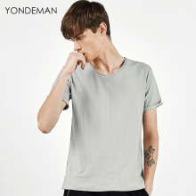 雅帝奴短袖T恤男圆领纯棉纯色修身日系复古打底衫潮卷边水洗体恤