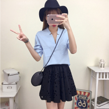 早秋雪纺衬衫女韩版宽松显瘦2016新款女装百搭七分袖V立领上衣潮