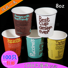 手绘一次性纸杯定做 咖啡杯奶茶纸杯定制豆浆杯子 100套带盖