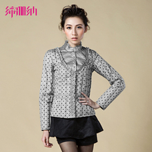 断码清仓69元 缔珊纳 蕾丝边活动立领烫钻波点 女士羽绒内胆 女