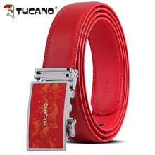 啄木鸟皮带 本命年男 女红腰带 真皮自动扣红色皮带 结婚皮带裤带