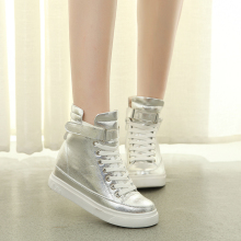 2016年秋冬季高帮内增高休闲鞋女韩版系带坡跟学生鞋金银色女鞋潮