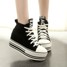 2016秋季高帮内增高帆布鞋系带厚底松糕坡跟女鞋8cm韩国学生女鞋