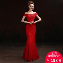 敬酒服新娘2017新款春夏季红色礼服长款鱼尾修身一字肩结婚晚礼服