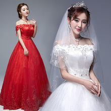 婚纱礼服2017春季新款韩式新娘婚礼红色一字肩齐地婚纱时尚大码女