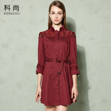 科尚春款韩版时尚风衣OL风格纯色外套修身长款风衣k6a0001