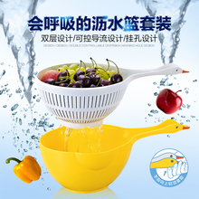 安雅可爱双层沥水篮 塑料水果盆洗菜篮淘米盆水瓢水舀水勺置物篮