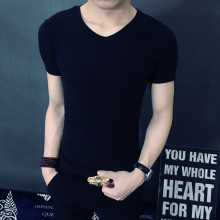 纯色大码青少年韩版修身V领短袖t恤男士夏季运动打底衫潮男装小衫
