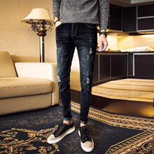 2017春季新款韩版小脚牛仔裤男修身型个性破洞潮流显瘦潮男士裤子