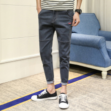 夏季新款韩版九分牛仔裤男士青少年修身9分小脚裤男潮男休闲裤子