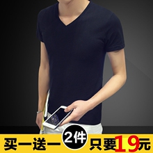夏季男士短袖t恤紧身v领纯色潮流男装修身半袖上衣服黑白色打底衫
