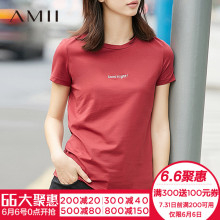 Amii短袖T恤女2017夏装新款大码修身字母刺绣纯色休闲棉打底上衣