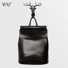 VIU2017时尚复古简约双肩包女韩版学院风真皮女包牛皮背包两用包
