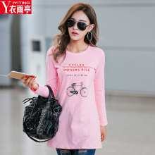 2016春装新款长袖T恤女大码宽松中年女装纯棉印花女士体恤打底衫