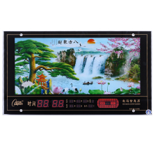 康巴丝动态画风景流水LED数码万年历电子大挂钟客厅夜光静音钟表