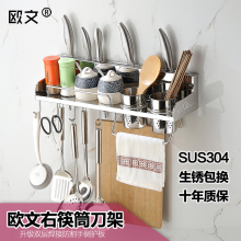欧文 厨房挂件 304不锈钢厨房置物架壁挂 厨具用品收纳刀架右筷筒