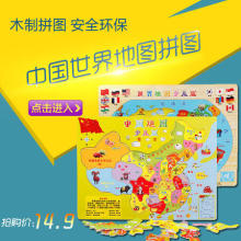 中国世界地图儿童玩具木制学前早教认知玩具木质拆装立体hape拼图