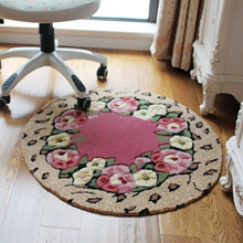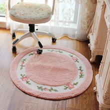 馨采田园风格客厅地毯卧室圆形电脑椅毯防滑地毯浴室地毯90*90cm