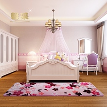 卧室粉色樱花客厅地毯 床边毯床前毯飘窗毯时尚可机洗不掉毛地毯
