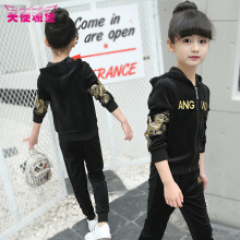 童装套装2017新款女童春秋款儿童金丝绒中大童休闲女孩卫衣两件套