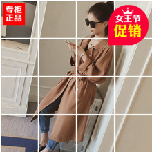 2017春装新款韩版时尚系带收腰中长款风衣女百搭薄款休闲过膝外套