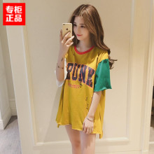 2017春夏季新款韩版中长款学生破洞宽松五分袖字母印花T恤上衣女