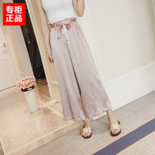 2017春夏季新款韩版亮丝系带蝴蝶结收腰休闲裤女九分裤宽松阔腿裤