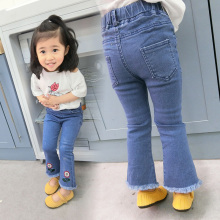 2017春秋女宝宝牛仔裤喇叭裤子1-2-3-4岁5女童长裤纯棉刺绣弹力裤