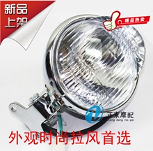 CG125摩托车改装复古大灯 GN125复古前照灯 铁壳黑色远近大灯圆灯