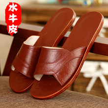 高档全牛皮居家凉拖鞋 男女情侣室内地板卧室防滑水牛皮拖鞋包邮