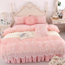 韩式水晶绒床上用品公主蕾丝法莱绒冬季保暖天鹅绒四件套1.8床品
