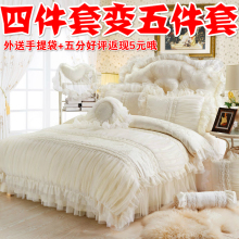全棉韩式床上用品四件套纯棉田园公主风床裙蕾丝花边床单婚庆家纺