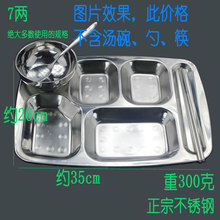 真不锈钢快餐盘 员工饭盆食堂餐盘 盒饭餐盘分格餐盆6格7两饭盒盘
